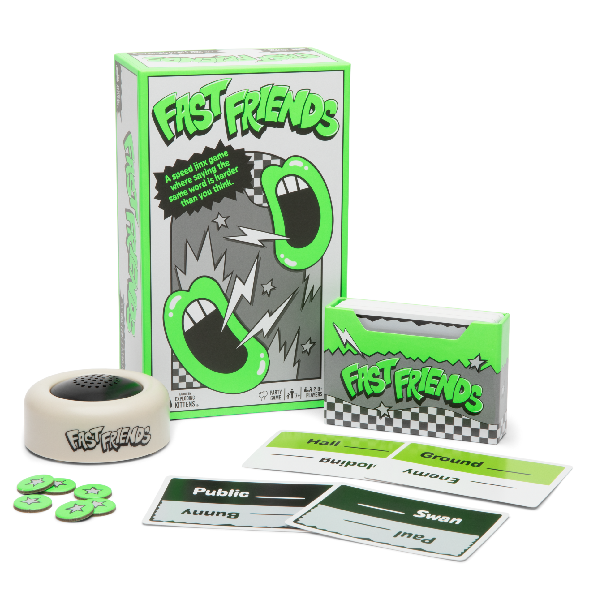 Get ready for Fast Friends, the speed jinx guessing game where saying the same word is harder than you think. Players race to match minds before the timer buzzes, hoping to shout the same phrase at the same time. Every round brings laughter, surprises, and friendly chaos as players lose Life Tokens and new pairs take their turn. Simple to learn, fast to play, and endlessly replayable, Fast Friends is the ultimate family game for family game night, parties, and holidays.