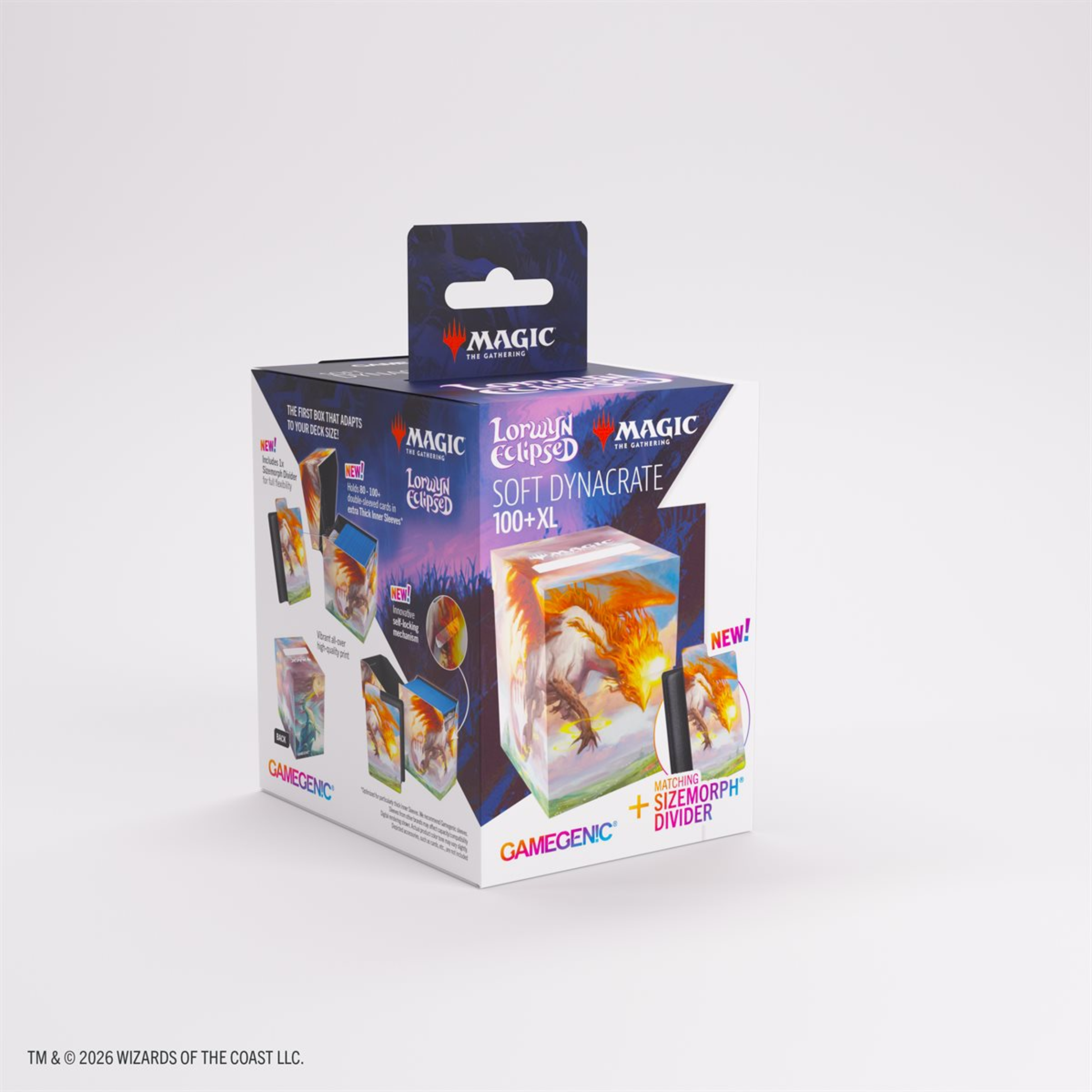 The ingenious Soft Dynacrate 100+ XL is a unique product on the market: It includes our successful Sizemorph Divider that perfectly adapts to the amount of cards inside the box. This makes it perfect for players who want to store standard size decks with token cards and sideboard, OR players with a double-sleeved Commander deck of 100 cards. On top of that, the Soft Dynacrate 100+ XL has an innovative self-lock mechanism, keeping cards securly locked in during transportation. It is fully printed with vibrant, officially licensed artwork from the game.