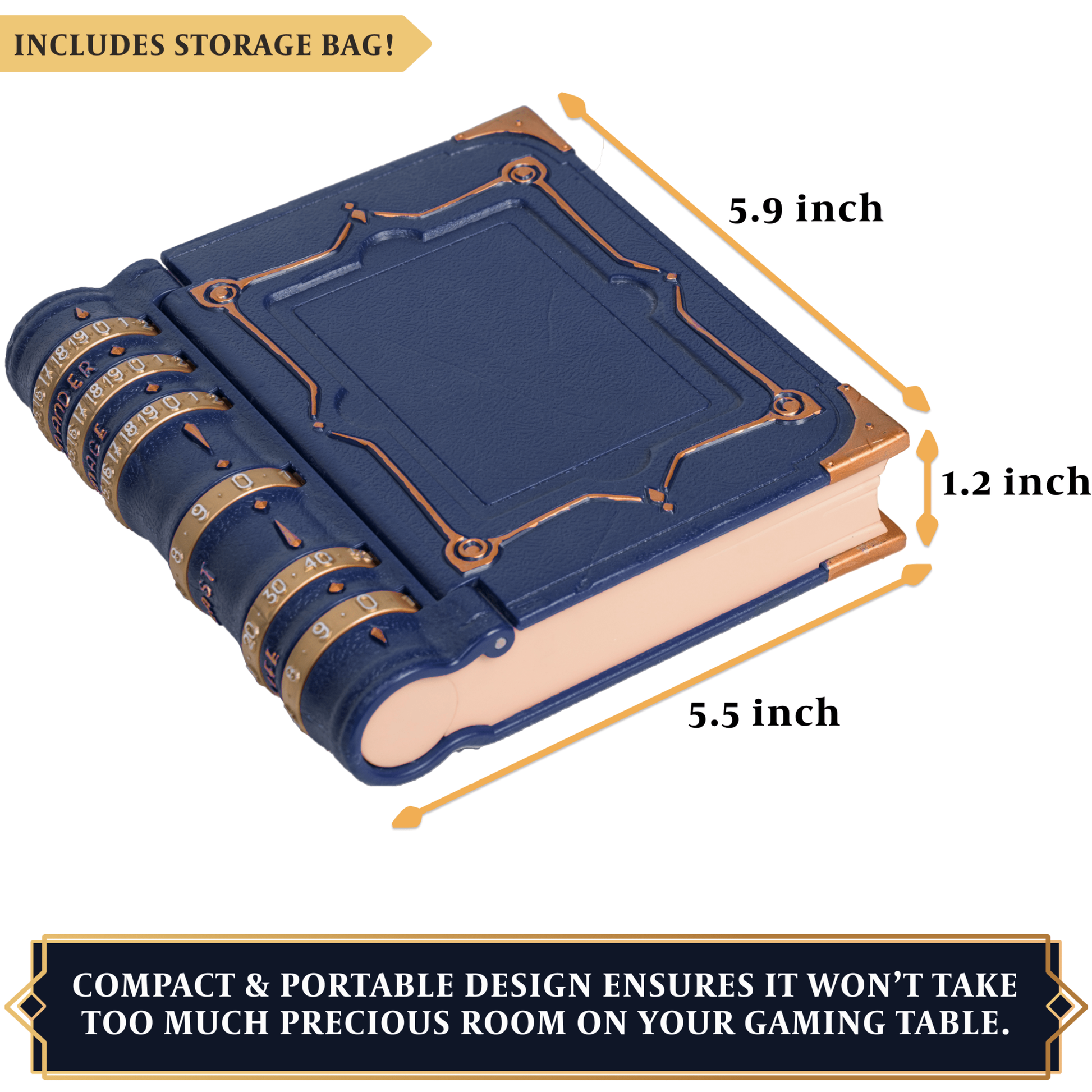 The MTG Commander's Codex is a book-shaped command zone designed to track every crucial game element, including life totals, commander casts, and commander damage—all in one sleek, immersive accessory. Featuring click-to-position number dials, a dedicated commander slot, and a hidden storage compartment for dice and up to 30 tokens, the Codex enhances organization while keeping gameplay smooth and uninterrupted.